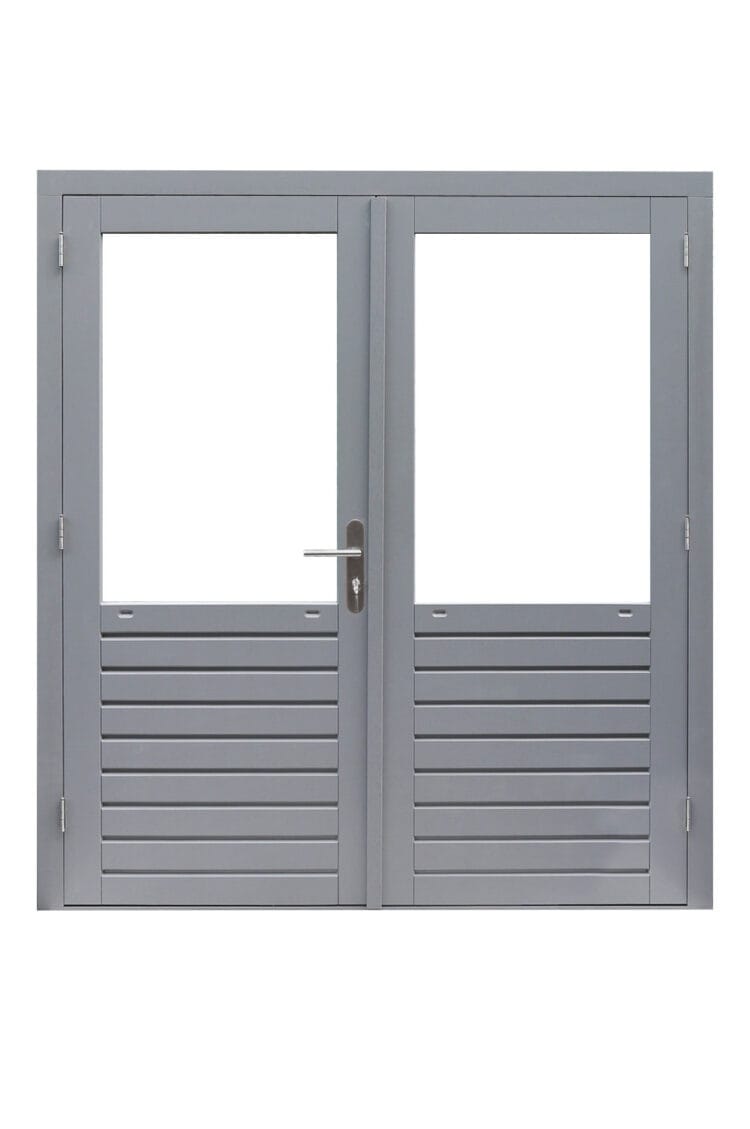 Hardhout Dubbele deur met dubbelglas, grijs gegrond